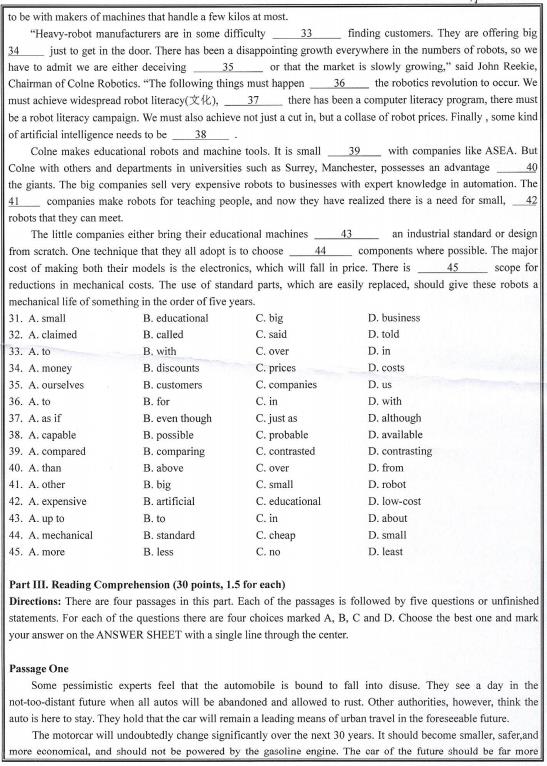 2019年沈阳工业大学博士研究生入学考试考博英语真题3