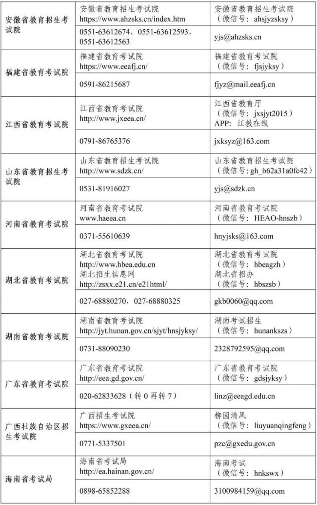 各省级教育招生考试机构开通省级教育招生考试机构网站、公众号、咨询电话和邮箱等信息汇总